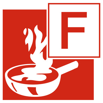 Brandklasse F steht für Brände von Speiseölen und Speisefetten. | |